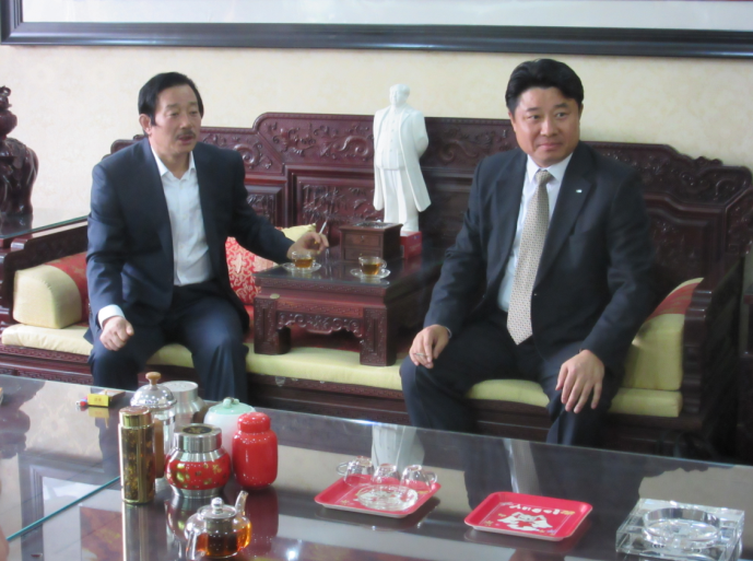 韩国斗山叉车总厂的金总务、朱部长来我公司进行考察